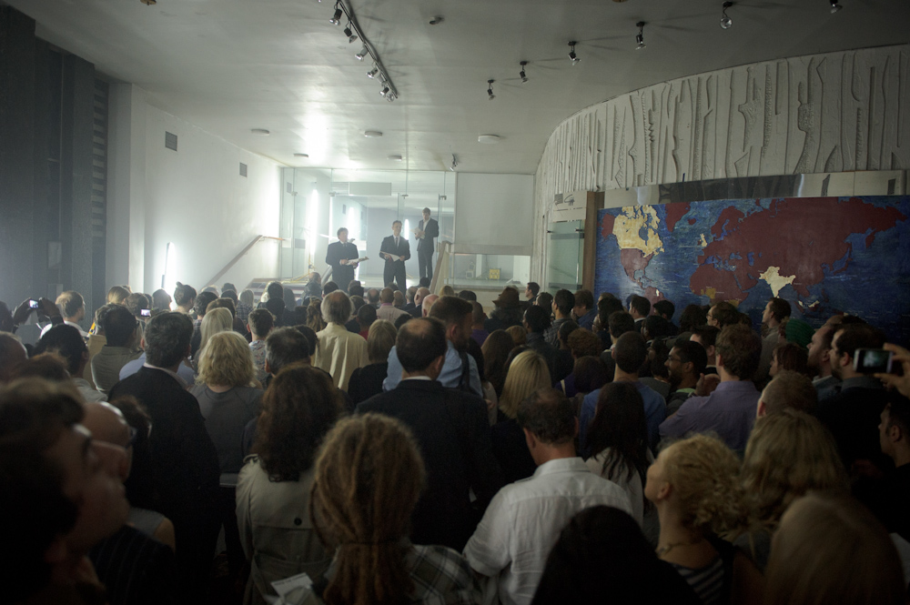 Myself and Peter Faulkner, in our role as artist:agitators The NeoFuturist Collective, were invited to act as hosts for an ambitious site-specific performance at the former Commonwealth Institute building in Kensington High Street. The result was a suite of works celebrating the history and architecture of this splendid modernist icon, Concerto for Brutalist Buildings. Fruit for the Apocalypse produced the work for World Listening Day 2011, after last year’s successful East London Soundscapes; supported by the Royal Borough of Kensington & Chelsea, as part of InTRANSIT festival. The song Megaphone Diplomacy is a trio for two live voices and one recorded.